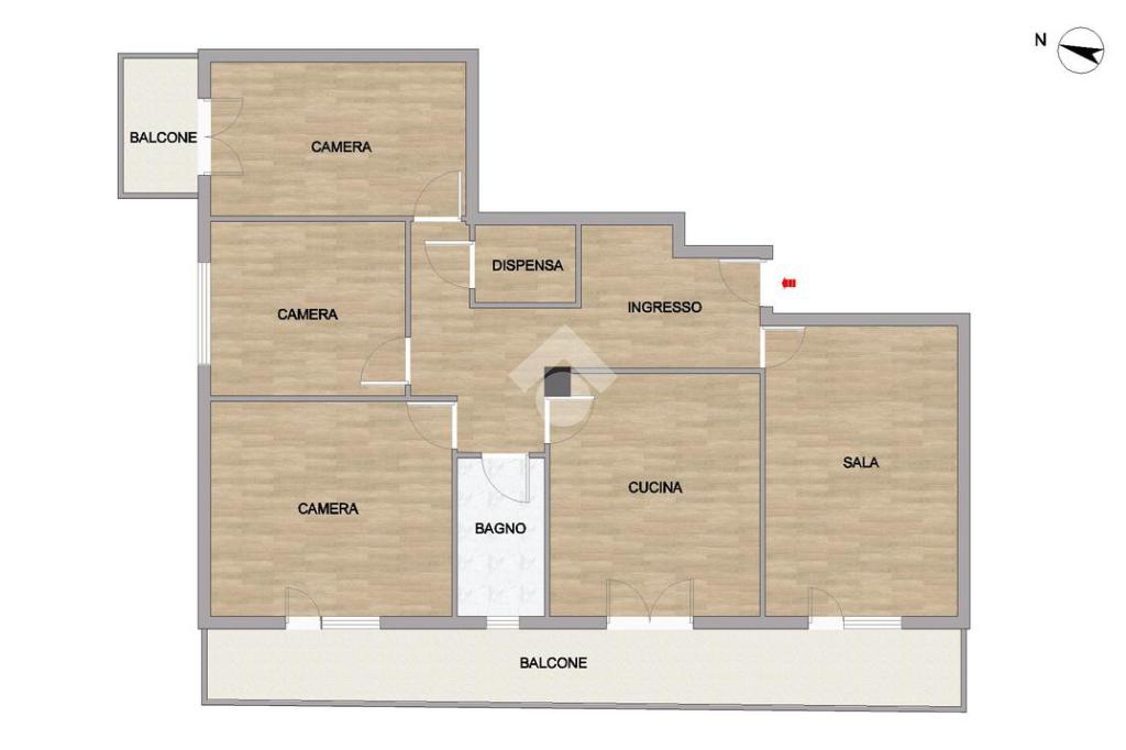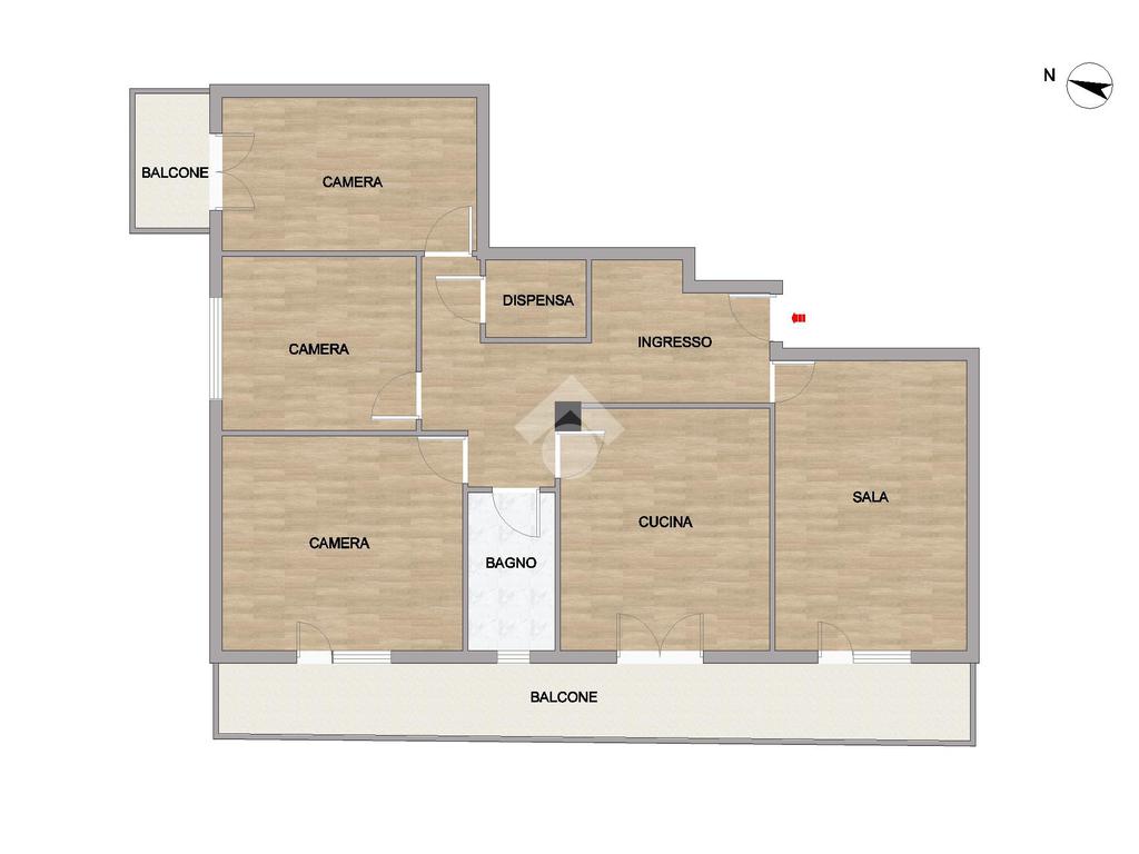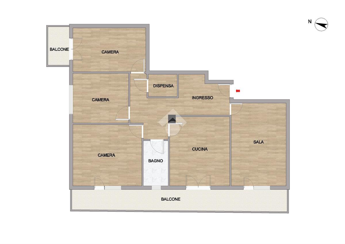 ingresso, cucina abitabile, soggiorno, tre camere da letto di cui una di metratura matrimoniale, un bagno finestrato ed una dispensa.